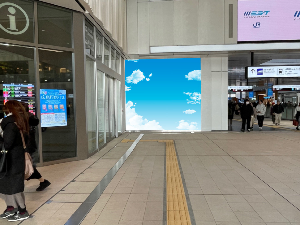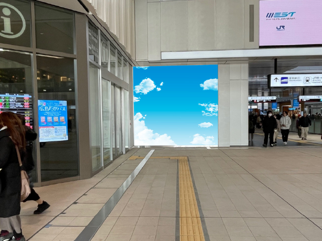 "広島駅構内、最大流動の南北自由通路に面した、JRみどりの窓口に横10m、縦2.5mの大画を設置。